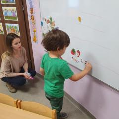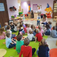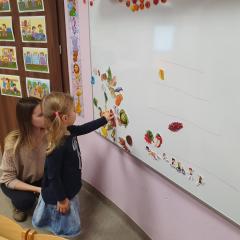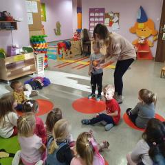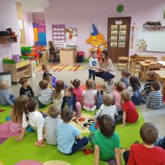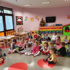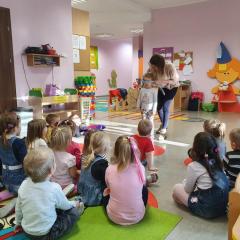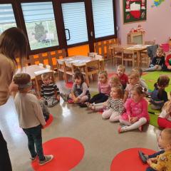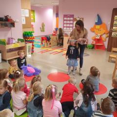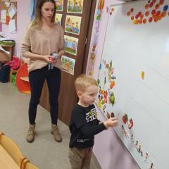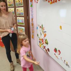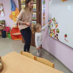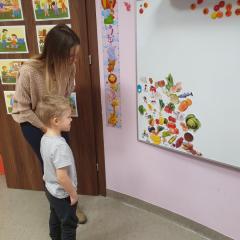 W dniu dzisiejszym (10-12-2019 r.) gościliśmy w naszym przedszkolu Panią dietetyczkę z kuchni cateringowej, która przeprowadziła z dziećmi warsztaty dotyczące zdrowego odżywiania. Dzieci za pomocą zmysłu dotyku i węchu rozpoznawały warzywa i owoce, układały również piramidę żywienia.