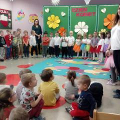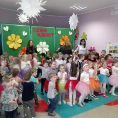 Wszystkie dziewczynki zostały obdarowane drobnymi upominkami od swoich kolegów z grupy. Również każda z Pań pracujących w Naszym Przedszkolu została obdarowana wiosennym kwiatem, dla Pani Dyrektor był cały bukiet.