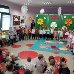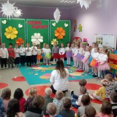 Takim tekstem chłopcy z grup Wiewiórek i Jeżyków przywitali wszystkie dziewczyny (te małe i te duże) na krótkim, ale jakże radosnym występie upamiętniającym święto wszystkich kobiet. Były śpiewy, wiersze i tańce.