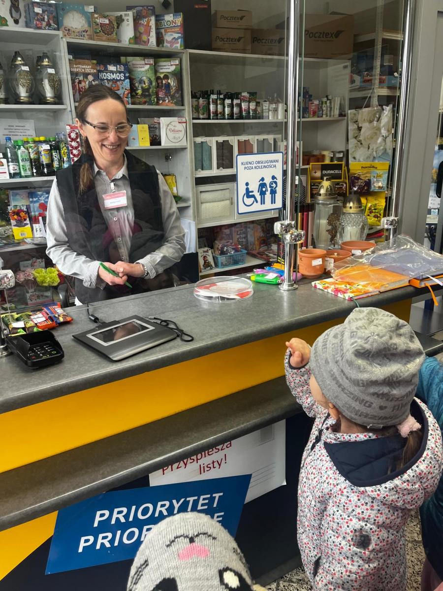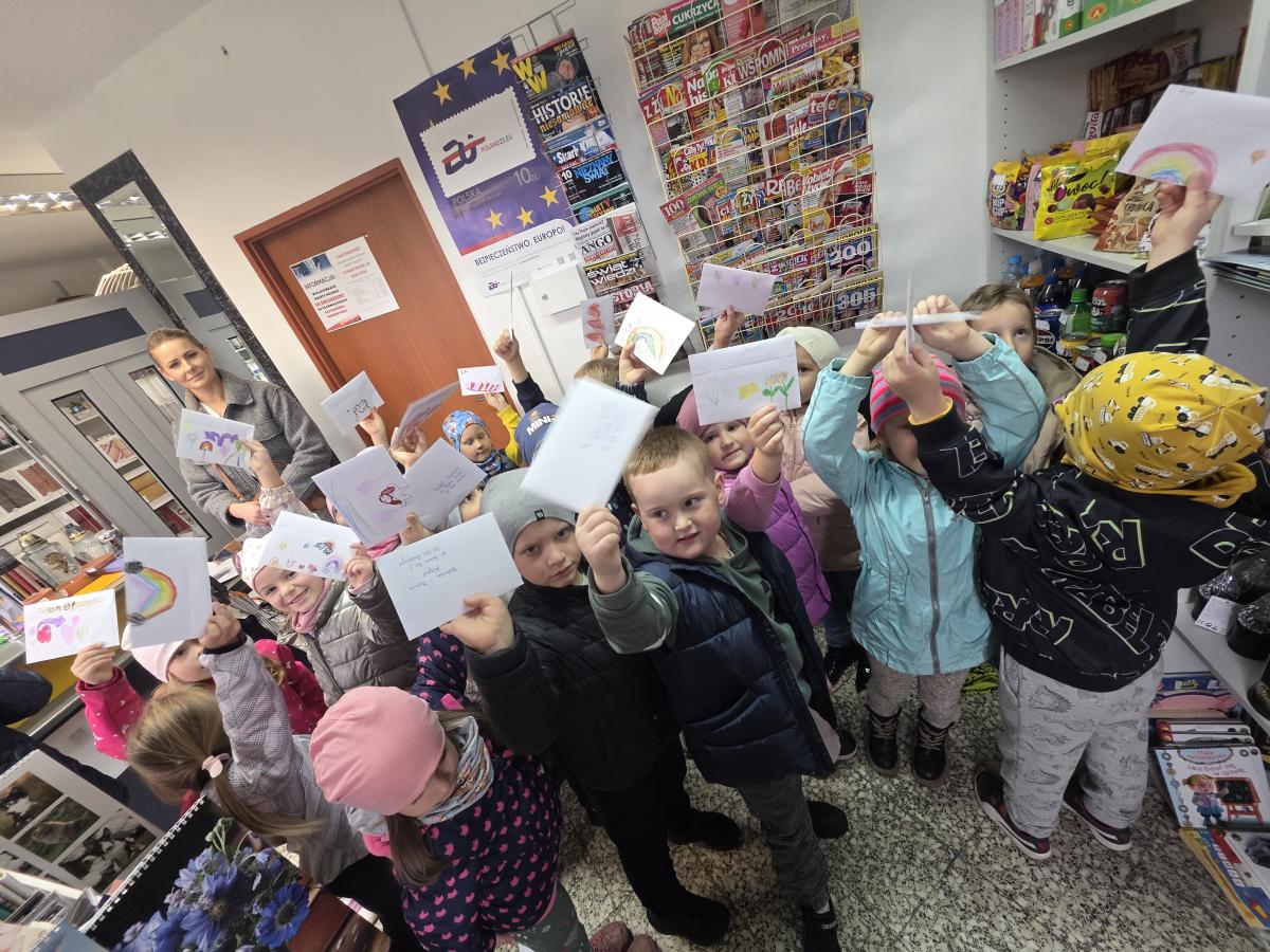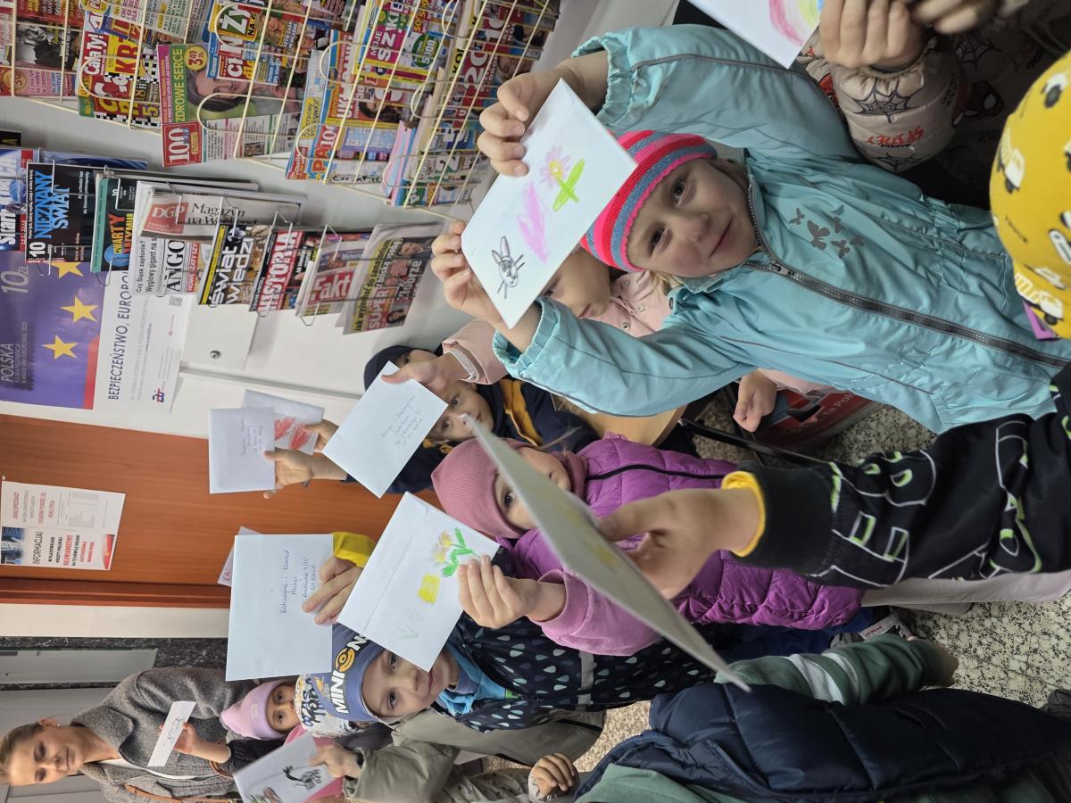 Podczas wizyty dzieci miały okazję zobaczyć, jak wygląda nadawanie listów, poznały znaczenie znaczków pocztowych oraz skrzynki na listy. Pani z poczty opowiedziała, jaką drogę pokonuje list, zanim trafi do adresata. Dzieci z zainteresowaniem obserwowały jej pracę i zadawały wiele pytań.