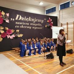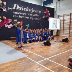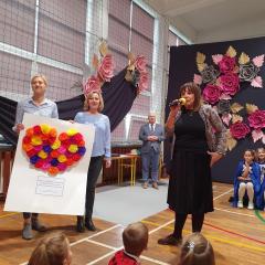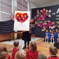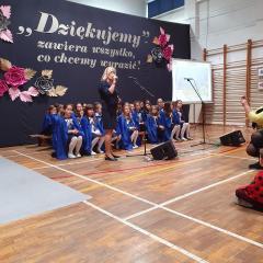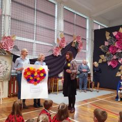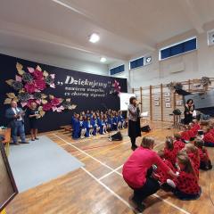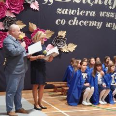 Część artystyczna przygotowana przez nauczycieli i uczniów szkoły rozpoczęła się od przybliżenia wszystkim zebranym historii szkoły, która przeplatana była wyjątkowymi utworami wokalnymi. Mięliśmy przyjemność wysłuchać chórku szkolnego "Kolorowe nutki". Cała oprawa muzyczna, wokalna, jak również dekoracje wykonane były na najwyższym poziomie.