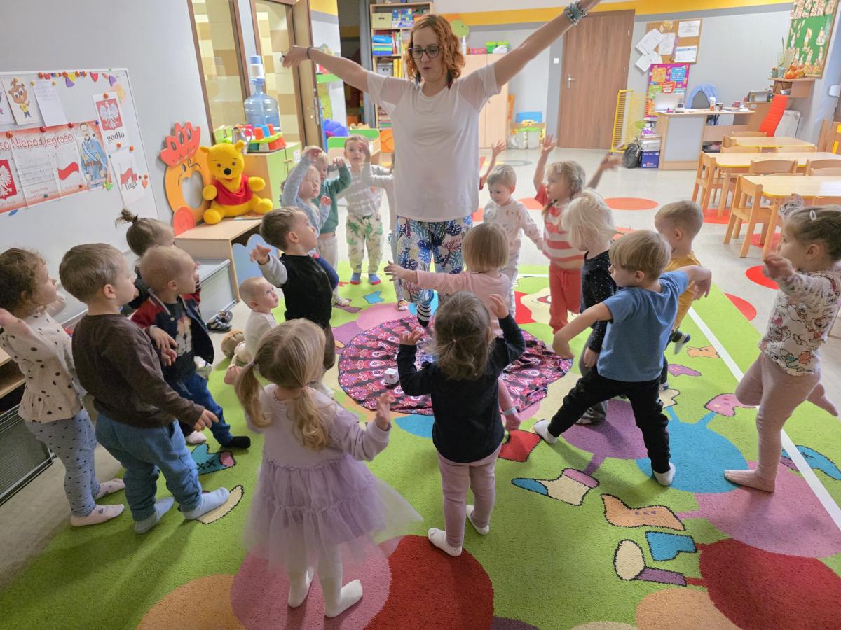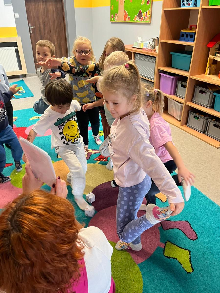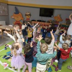 Zajęcia pozwoliły połączyć ruch z zabawą oraz wprowadzić jesienną atmosferę w przyjazny dla przedszkolaków sposób.