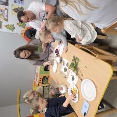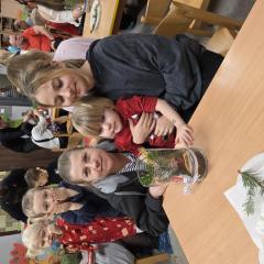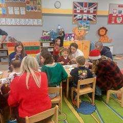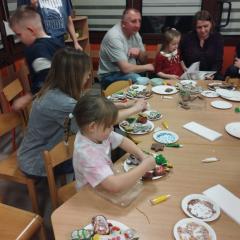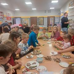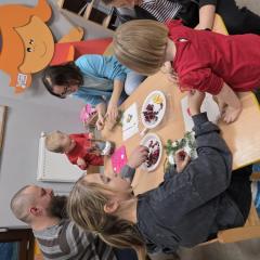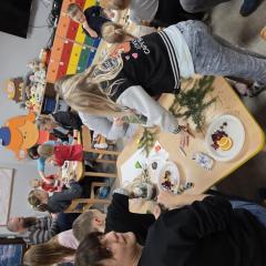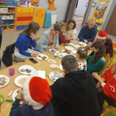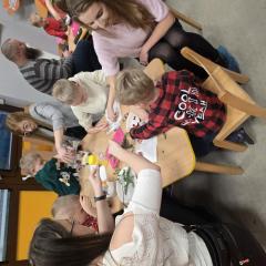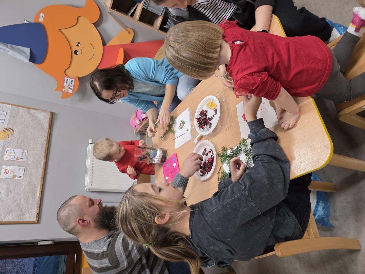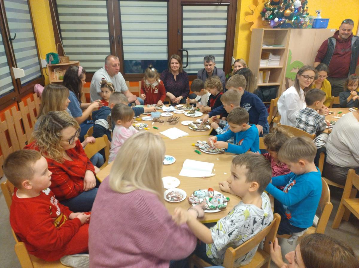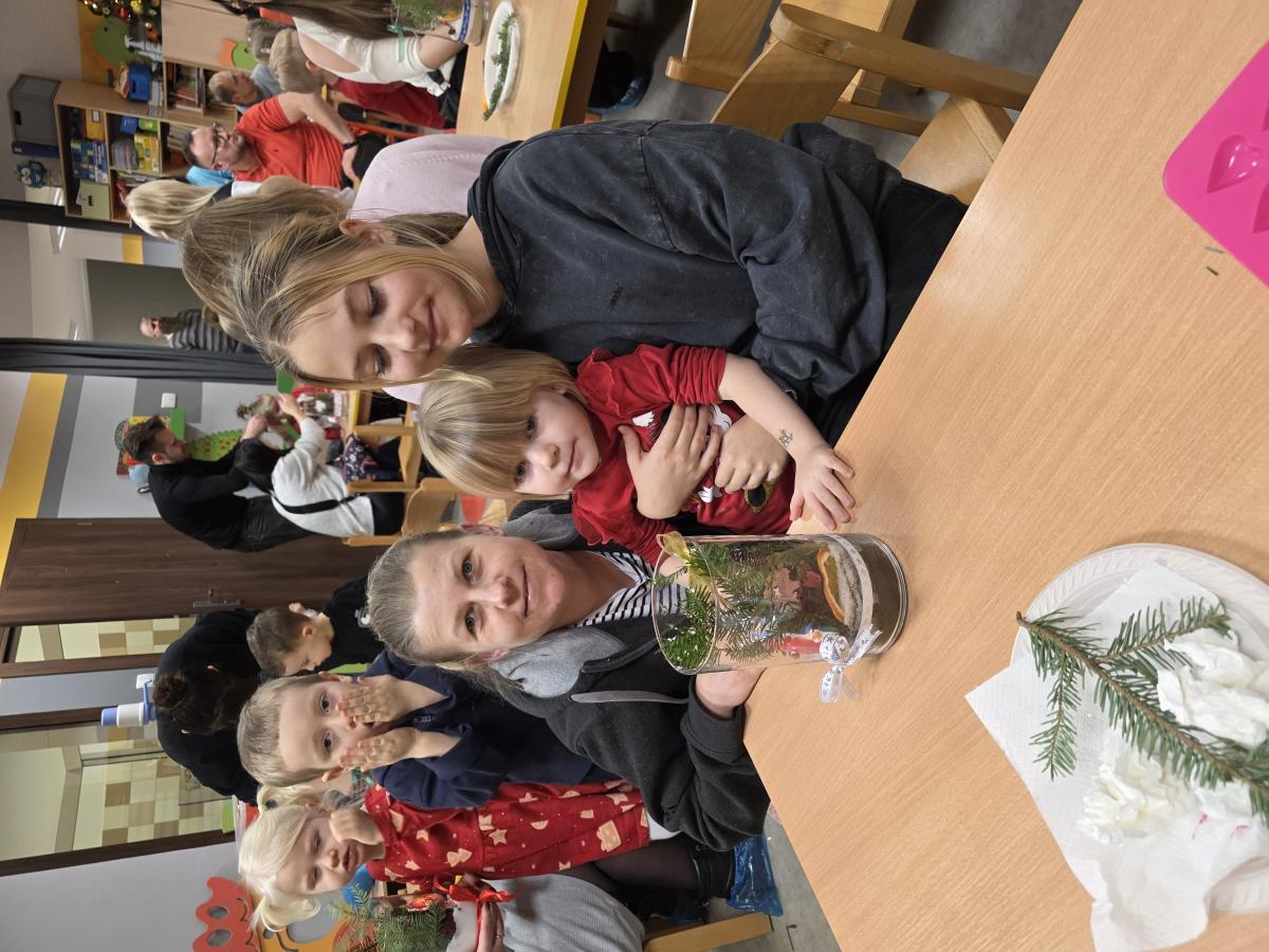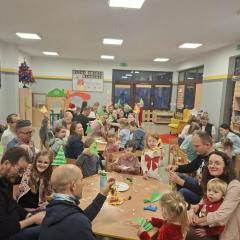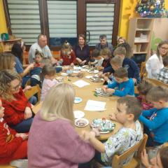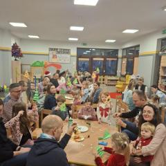 W poszczególnych grupach rodzice wraz z dziećmi aktywnie uczestniczyli w przygotowanych zajęciach. Wspólnie dekorowali pierniki, tworzyli stroiki świąteczne z różnorodnych materiałów plastycznych i naturalnych rozwijając przy tym kreatywność i zdolności manualne najmłodszych. Wszystkie te aktywności wprowadziły wszystkich w magiczny nastrój nadchodzących Świąt Bożego Narodzenia.