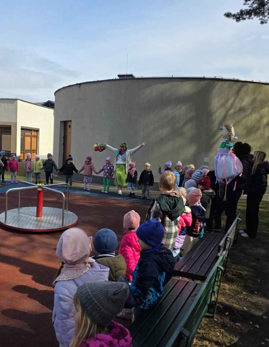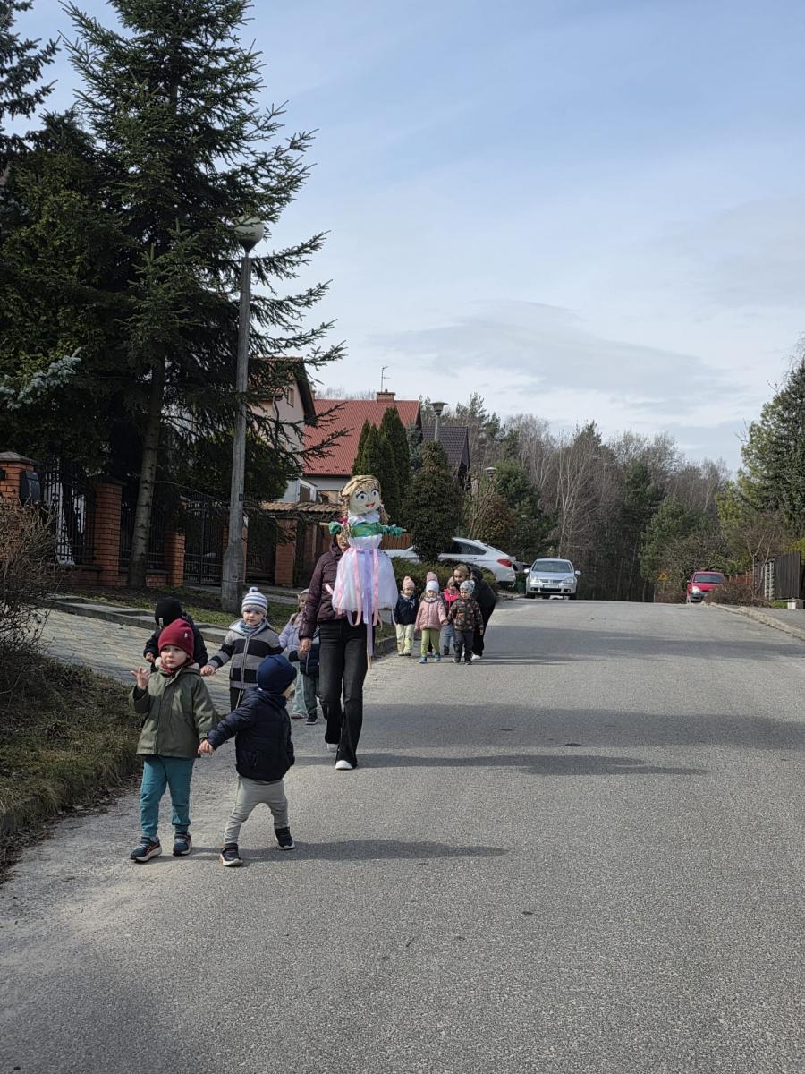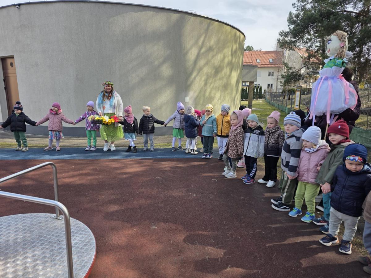 20.03.2026 r. dzieci w naszym przedszkolu odwiedziła wyjątkowa gościni – Pani Wiosna 💐, która przyniosła ze sobą uśmiech, ciepło i pierwsze oznaki budzącej się do życia przyrody. Następnie, wspólnie z Panią Wiosną oraz kukłą Marzanny, dzieci wyruszyły w radosnym pochodzie ulicami w pobliżu przedszkola. Kolorowe stroje, śpiewy i wiosenne okrzyki sprawiły, że wszyscy mogli poczuć nadchodzącą zmianę pór roku.