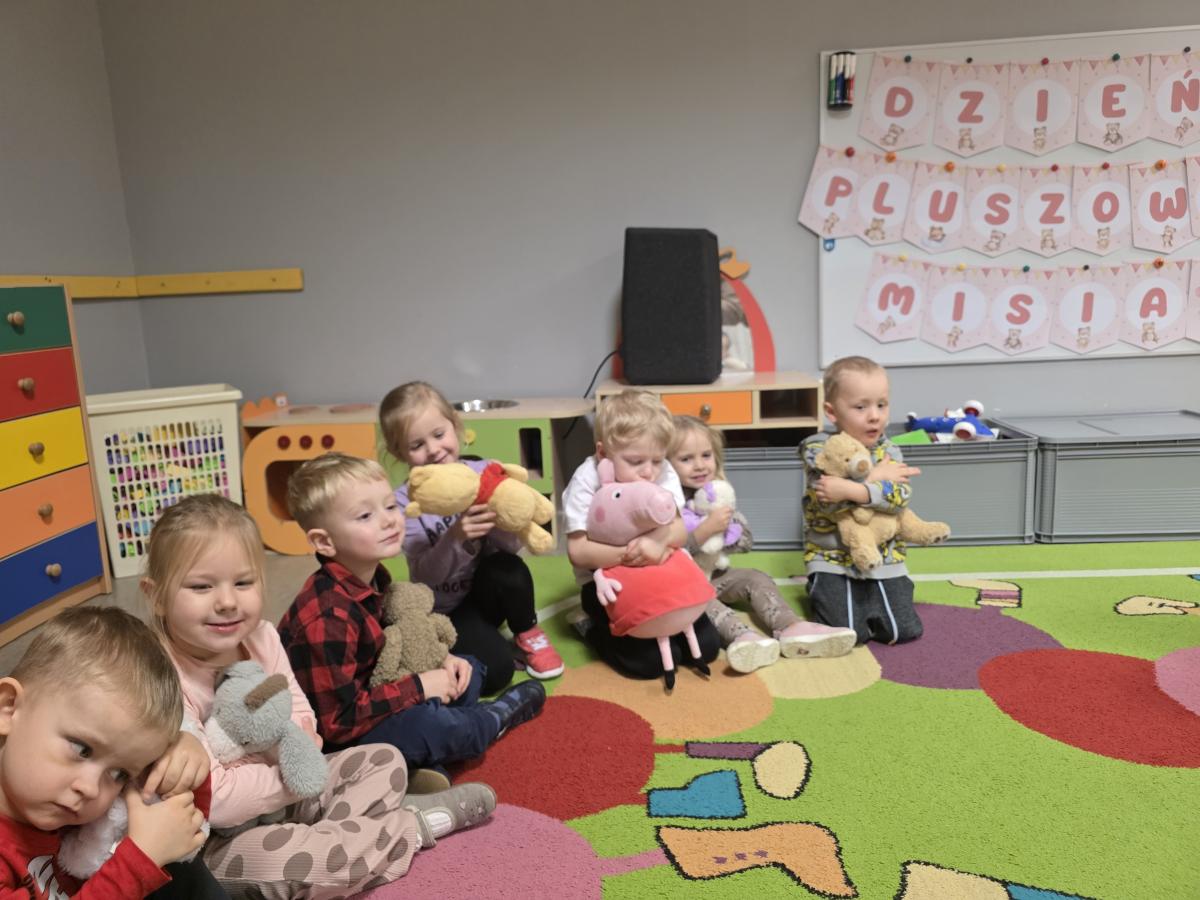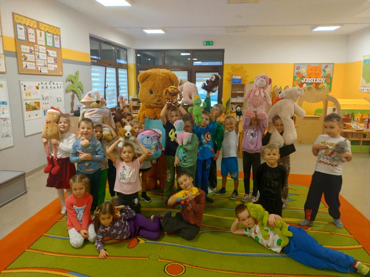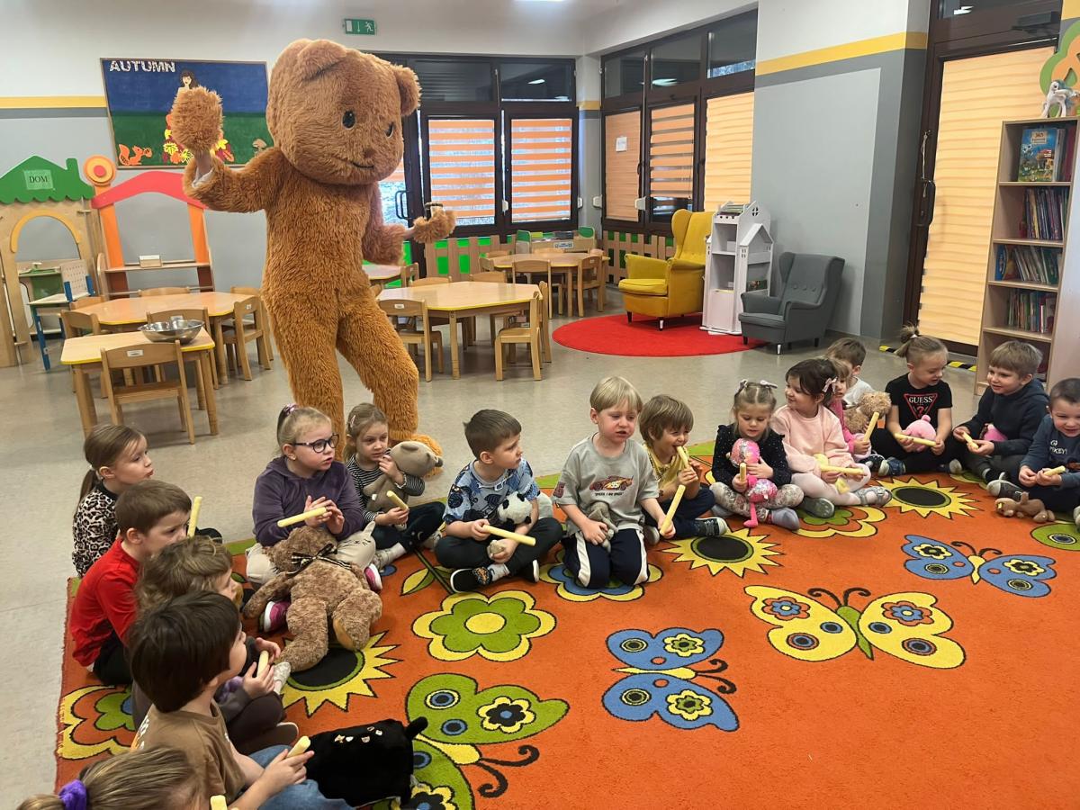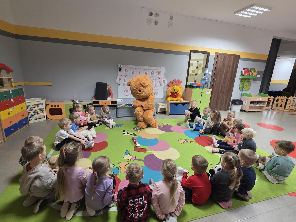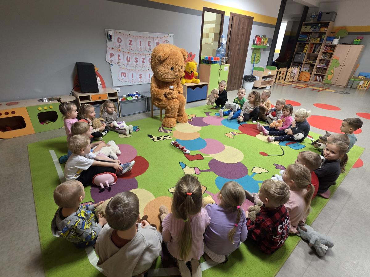 W naszym przedszkolu uroczyście obchodziliśmy Dzień Pluszowego Misia. Dzieci przyszły do sal z ulubionymi pluszakami i już od rana panowała radosna, pełna ciepła atmosfera. Największą atrakcją dnia była niespodzianka w postaci dużego misia, który odwiedził wszystkie grupy. Dzieci z entuzjazmem witały misia, przytulały się do niego, tańczyły i robiły z nim pamiątkowe zdjęcia.