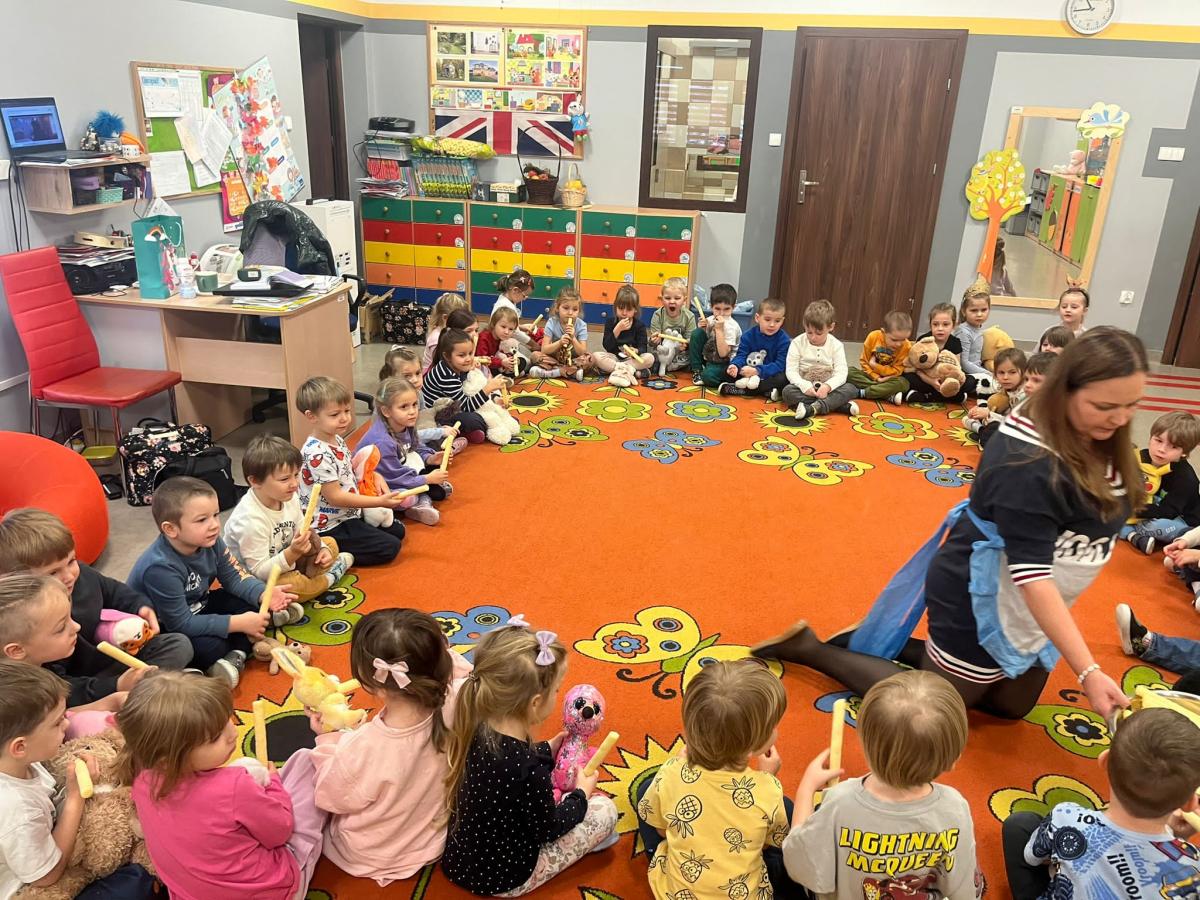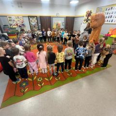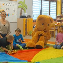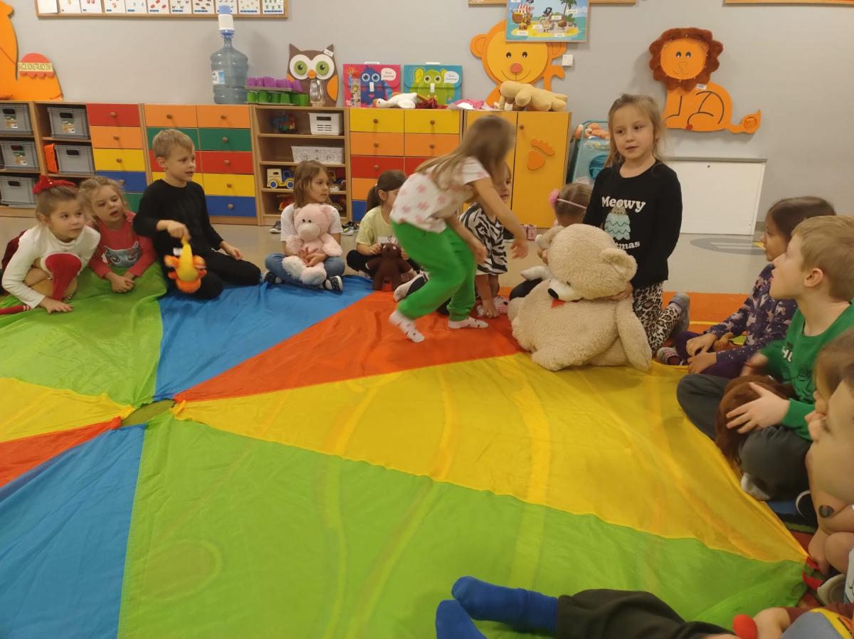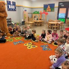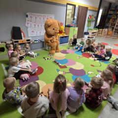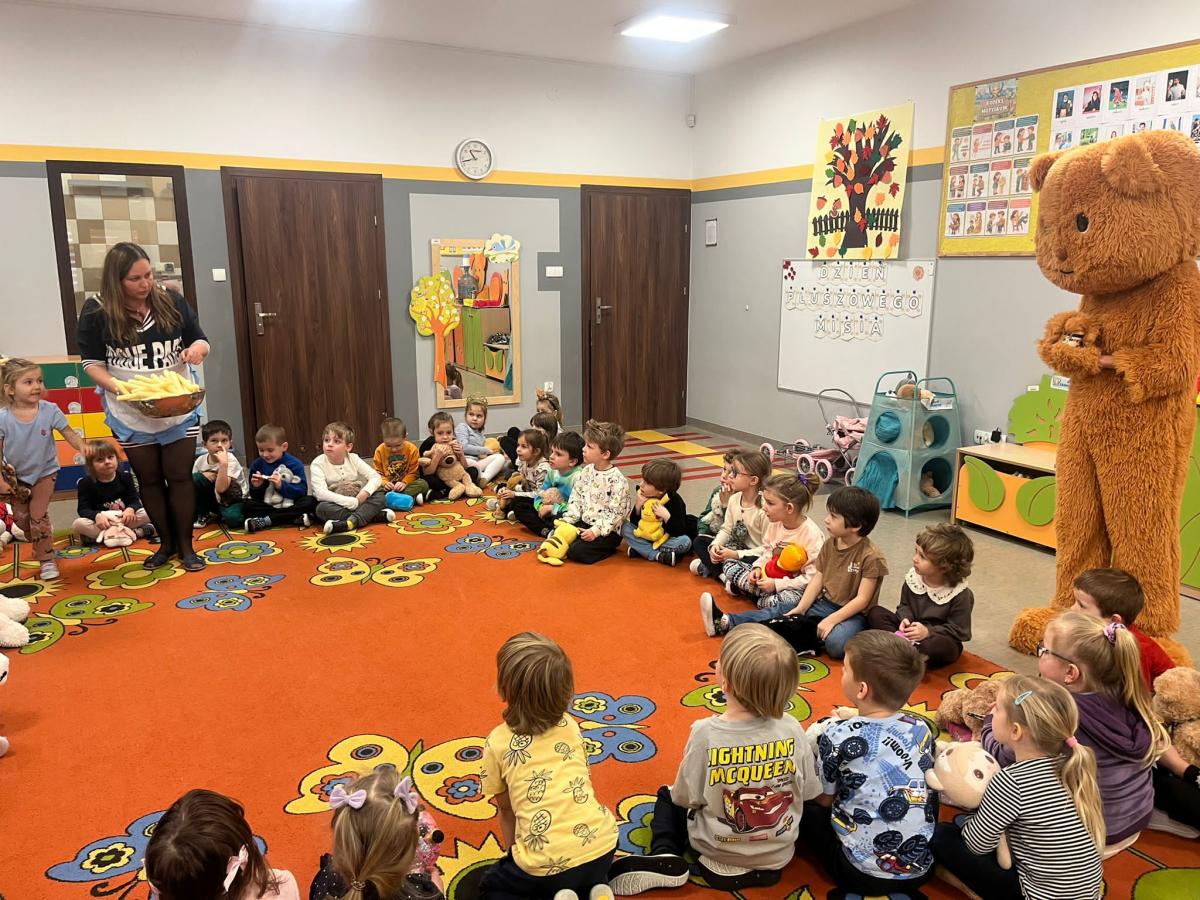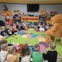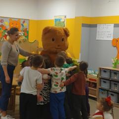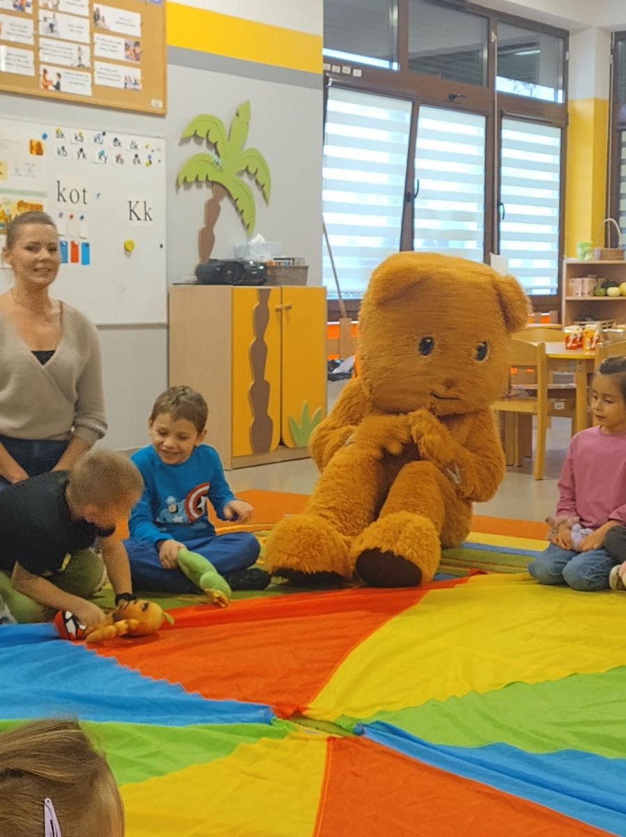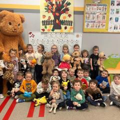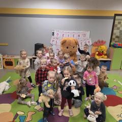 W naszym przedszkolu uroczyście obchodziliśmy Dzień Pluszowego Misia. Dzieci przyszły do sal z ulubionymi pluszakami i już od rana panowała radosna, pełna ciepła atmosfera. Największą atrakcją dnia była niespodzianka w postaci dużego misia, który odwiedził wszystkie grupy. Dzieci z entuzjazmem witały misia, przytulały się do niego, tańczyły i robiły z nim pamiątkowe zdjęcia.