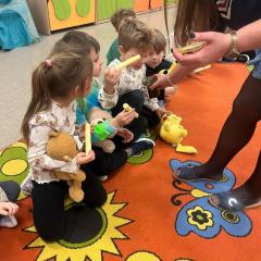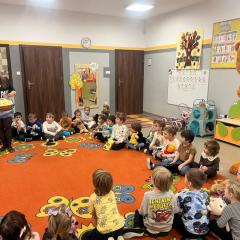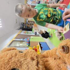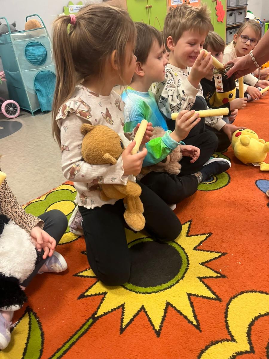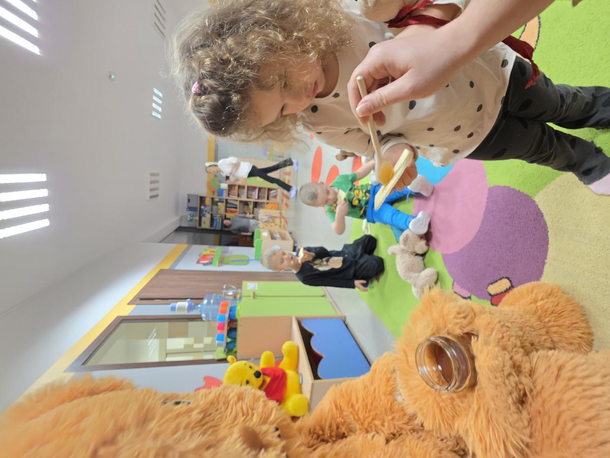 Podczas zajęć przedszkolaki poznały historię powstania święta pluszowego misia oraz ciekawostki o niedźwiedziach. Brały udział w zabawach ruchowych i plastycznych związanych z misiową tematyką. Nie zabrakło również degustacji pysznego miodu 🍯, który dzieci smakowały z wielką ciekawością, poznając jego różne odmiany i właściwości.